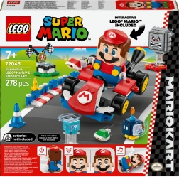 Byg din egen racerbane og sæt fart på med LEGO Super Mario Mario Kart. Sættet indeholder en interaktiv LEGO Mario figur, en Standard kart med driftefunktion og en skalleskydnings-udløser til nervepirrende løb. Der er også en startzone, sammenkoblelige barrierer, forhindringer og belønninger samt ikoniske fjender, der gør legen endnu sjovere.