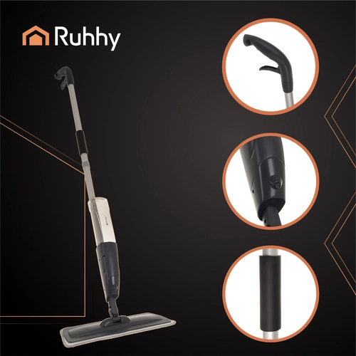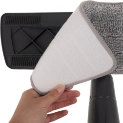 Lethed og effektivitet i ét – Den kompakte Ruhhy-mop muliggør hurtig gulvvask uden brug af spand. Ved at trykke på udløseren sprøjter du rengøringsopløsningen og tørrer den straks af med mikrofiberen.