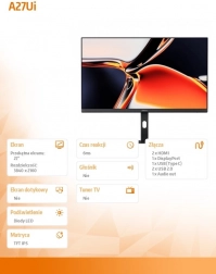 Xiaomi 4K Monitor A27Ui er et ideelt valg til arbejde, foto- og videoredigering samt underholdning. IPS‑panelet med opløsningen 3840 × 2160 giver et fint billede og brede betragtningsvinkler. Det brede farverum på 95 % DCI‑P3 og 100 % sRGB sammen med fabriks-kalibrering til Delta E < 2 sikrer nøjagtige og livlige farver direkte ud af kassen.