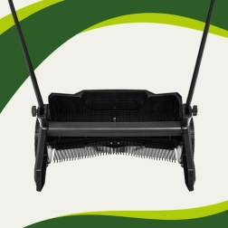 Den justerbare børstehøjde 0–40 mm muliggør præcis opsamling på forskellige overfladetyper – fra græsplæne til faste stier. Den lette konstruktion med store hjul sikrer nem skubning og manøvredygtighed. Takket være muligheden for at justere håndtagets højde er arbejdet komfortabelt for personer i forskellige højder.