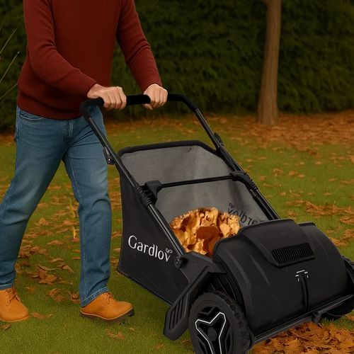 Den manuelle fejemaskine GARDLOV er en pålidelig og miljøvenlig løsning til hurtig haveoprydning uden kabler, batterier og brændstof. Støjsvag drift og vedligeholdelsesfri mekanisme gør den til det ideelle værktøj til daglig brug gennem hele sæsonen. Den roterende børste samler effektivt blade og afklippet græs direkte i den store kurv på 100 l.