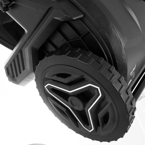 Den rummelige opsamlingspose sparer tid. Et komfortabelt håndtag med blødt greb og store hjul gør det nemt at skubbe og manøvrere.