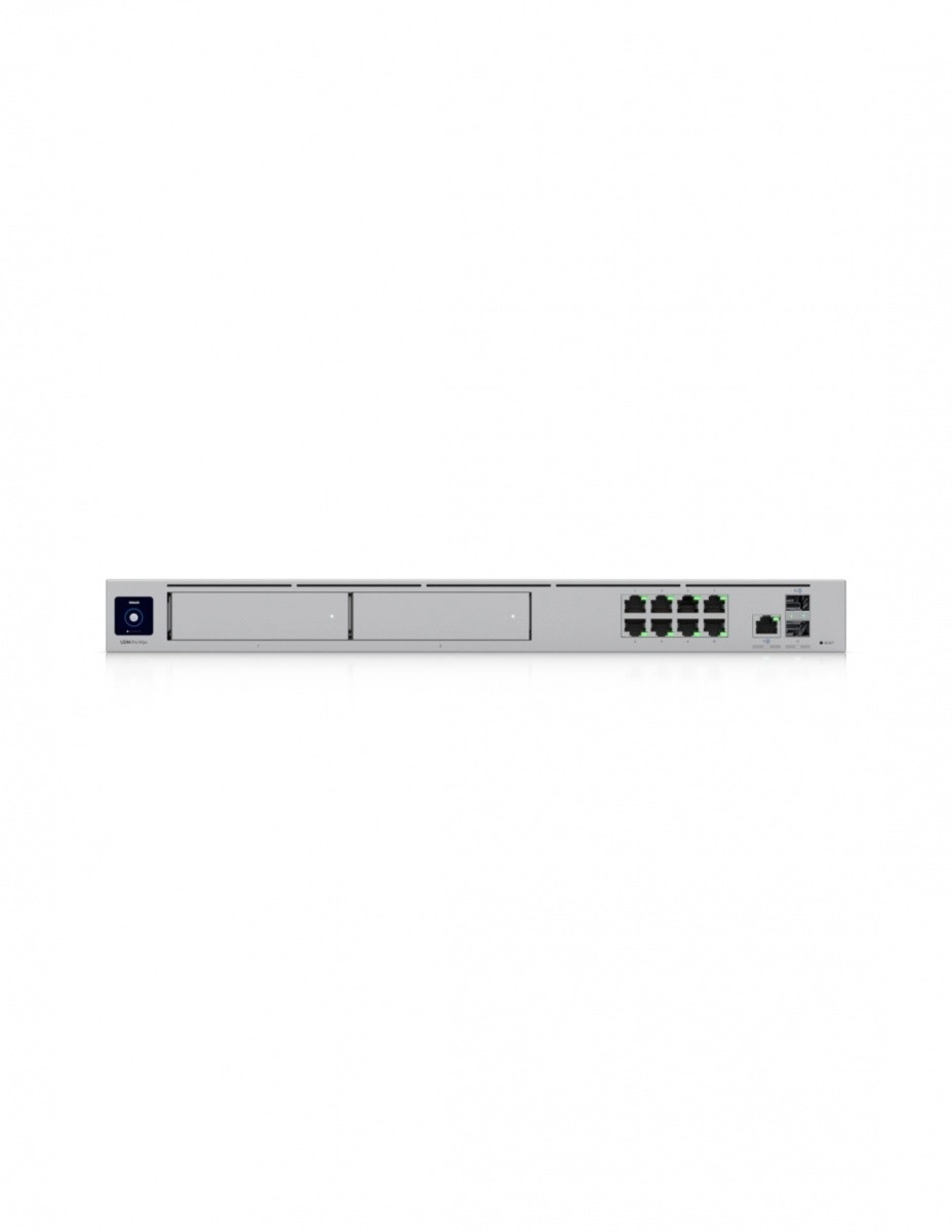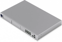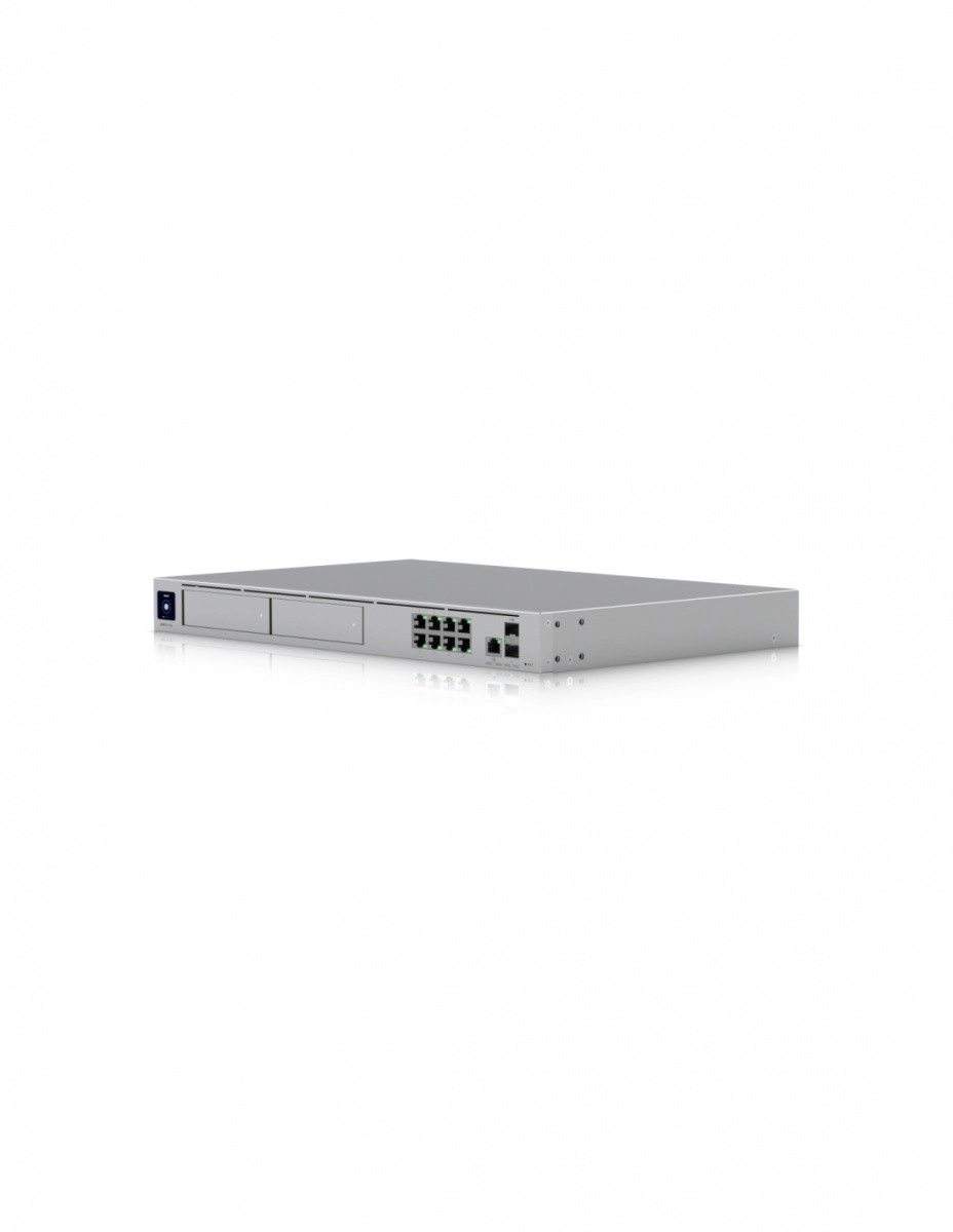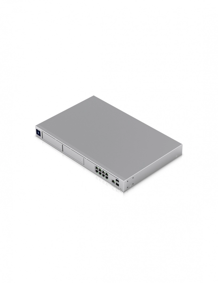Enheden indeholder en komplet pakke af UniFi-applikationer til samlet administration af netværk, sikkerhed og overvågning. Forbindelsen sikres af 10G SFP+-porte, 8× GbE LAN RJ45 og 2,5 GbE RJ45 WAN. Den indbyggede 1,3" touchskærm gør det nemt at overvåge og udføre grundlæggende administration direkte på enheden.