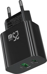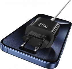 Oplad op til to enheder samtidigt med kombinationen af USB‑C og USB‑A. 25 W effekt og understøttelse af hurtig opladning sikrer effektiv påfyldning af strøm uden unødig ventetid. De kompakte mål og høje byggekvalitet gør opladeren til en pålidelig hjælper hjemme og på farten.