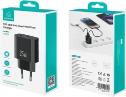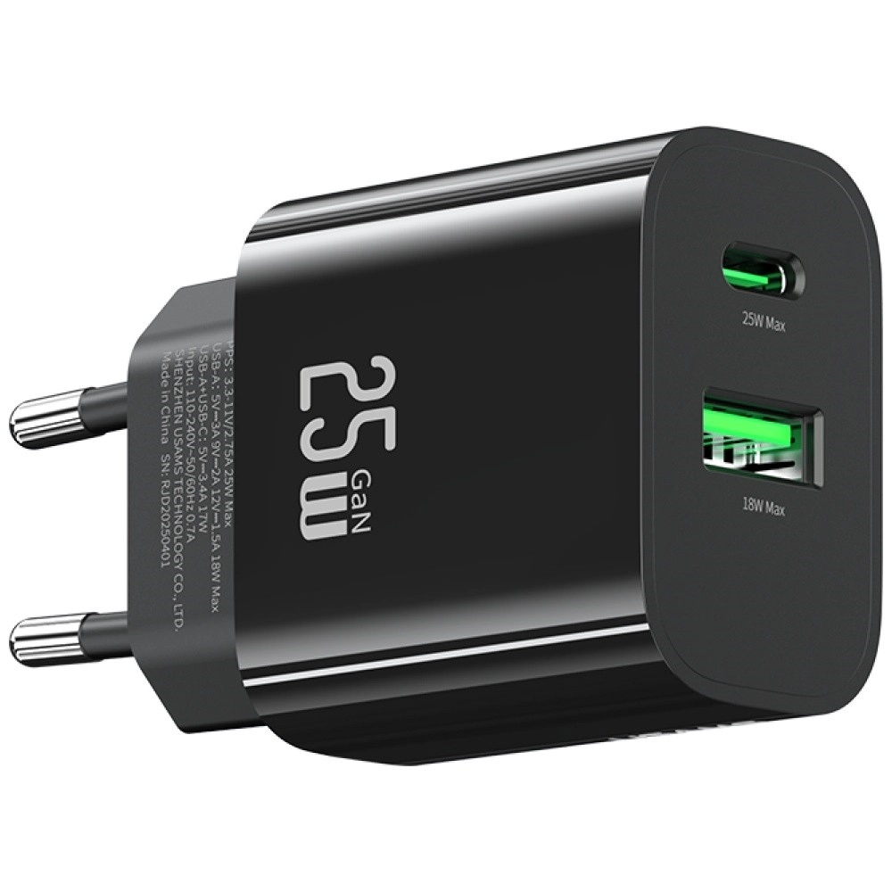 Den kompakte vægoplader fra USAMS leverer 25 W effekt, porte USB‑C + USB‑A og Fast Charging-teknologi til hurtig og sikker strømopladning. Takket være en intelligent chip, stabil spænding og beskyttelse mod overbelastning er den ideel til smartphones, tablets og hovedtelefoner. Let og holdbar konstruktion i elegant sort er perfekt til rejsen.