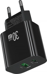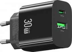 USAMS 30 W opladeren er en ideel løsning til smartphones, tablets og anden elektronik. Kombinationen af USB‑C og USB‑A giver mulighed for at oplade op til to enheder på én gang, mens en intelligent chip automatisk tilpasser strømmen for optimal og skånsom opladning. Med GaN-teknologi kan du regne med højere effektivitet og lavere varmeudvikling.