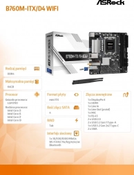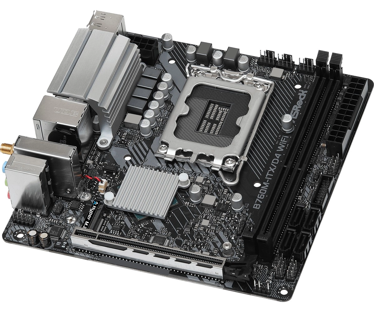 ASRock B760M-ITX/D4 WiFi er et kraftfuldt mini‑ITX bundkort til opbygning af kompakte PC’er. Det understøtter moderne Intel Core processorer (LGA1700), hurtig DDR4‑hukommelse op til 5333+ (OC), grafikkort via PCIe 4.0 x16 og lynhurtige lagre via Hyper M.2 (PCIe Gen4 x4). Stabil strømforsyning sikres af 5+1+1 VRM med Dr.MOS, forstærket 6‑lags PCB og stålforstærket PCIe‑slot.