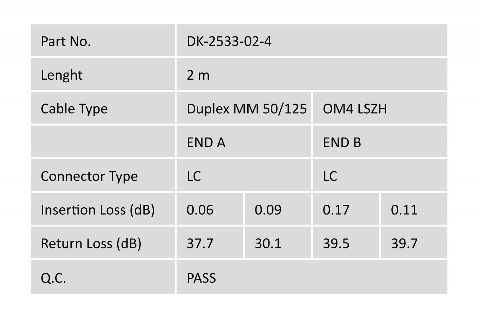 LC-stik med keramiske ferruler garanterer stabil forbindelse med lav dæmpning. LSOH-kappen minimerer røgudvikling og indeholder ingen halogener, hvilket er velegnet til installationer indendørs med fokus på sikkerhed. Kablet leveres enkeltpakket med måleprotokol for at sikre overensstemmelse og kvalitet.