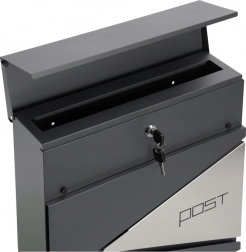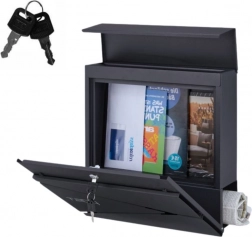 Det rummelige kabinet rummer post i A4-format, indkast med en bredde på 3,5 cm gør levering lettere, og den integrerede avis-holder i den nederste del gør det muligt at tage tryksager uden at åbne hovedrummet. Sikker opbevaring sikres af dør med lås og to nøgler. Monteringen er hurtig – i pakken finder du rawlplugs og skiver.