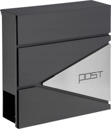 Denne antracitfarvede brevpostkasse kendetegnes ved et rent design, fremhævet af geometriske udskæringer og den minimalistiske tekst “POST”. Takket være de holdbare materialer og pulverlakeringen er den ideel til langvarig udendørs brug.