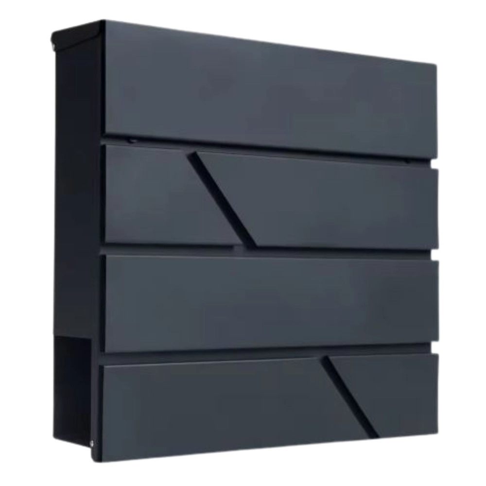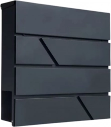 Denne store postkasse kombinerer funktionalitet og tidløst udseende. Den er fremstillet af galvaniseret stål med pulverlak, hvilket sikrer høj modstandsdygtighed over for korrosion, regn og mekanisk slitage. Geometriske udskæringer giver et moderne udtryk og matcher let forskellige facadestile.