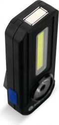 To uafhængige lysfunktioner dækker de fleste situationer: spotlys til længere rækkevidde og bredt COB-lys til jævn arbejdsbelysning. Lygten tilbyder fleksibel montering takket være magnet og klips med krog, så du nemt kan fastgøre den på metaldele eller hænge den op for bekvem håndfri brug.