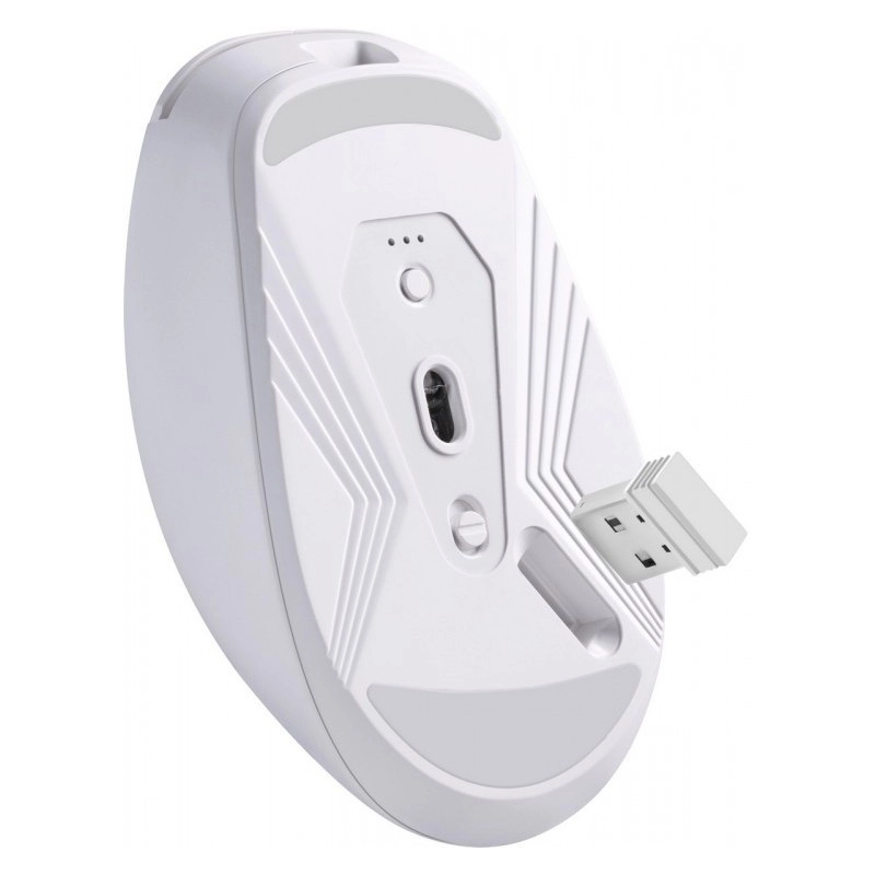 Stilfuld trådløs mus til arbejde og studier med mulighed for forbindelse via Bluetooth eller 2,4 GHz USB-adapter. Tilbyder optisk sensor op til 1600 DPI med 3 følsomhedstilstande, indbygget batteri på 400 mAh, 2 sideknapper til hurtig styring og teflon-glideflader for jævn bevægelse.
