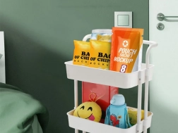 Tre dybe hylder med perforeret bund forbedrer luftcirkulationen og forhindrer, at genstande falder ud. Ideel til madvarer, kosmetik og småt tekstil.