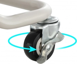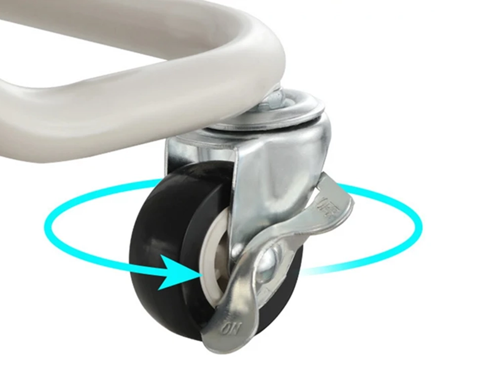 Fire drejelige hjul og et praktisk håndtag gør det let at flytte reolen rundt i hele hjemmet. Den indbyggede bremse sikrer en stabil position under brug.