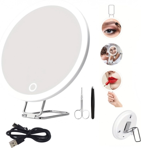 Praktisk kosmetikspejl med 30× forstørrelse og LED‑bagbelysning tilbyder 3 lysindstillinger (kold, varm, naturlig) og trinløs lysdæmpning. Takket være hukommelse for sidste indstilling, stærk sugekop og justerbart beslag kan det nemt placeres på en glat overflade eller bruges som bord- eller håndspejl. Det indbyggede 1500 mAh batteri holder op til 7 dage på en enkelt opladning, og i pakken finder du også stålpincet og saks til perfekt finpudsning af detaljer.
