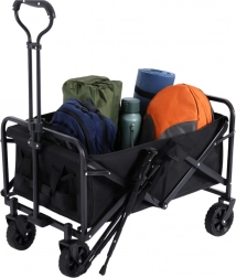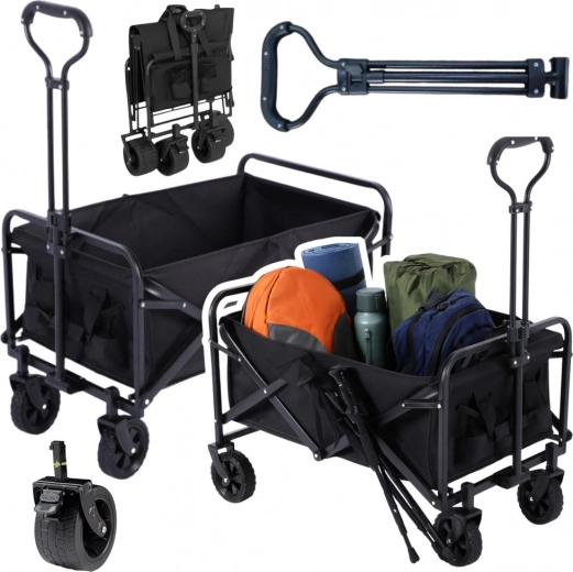 Nyd bekymringsfri transport af dine ting til stranden, i campingpladsen eller rundt i haven. Den sammenklappelige vogn tilbyder en rummelig kasse på 120 l, bæreevne på 80 kg og en holdbar kombination af metal, tekstil og plast. Takket være det teleskopiske håndtag med behageligt skumgreb er den let at styre, og fire hjul sikrer jævn kørsel på forskellige underlag.
