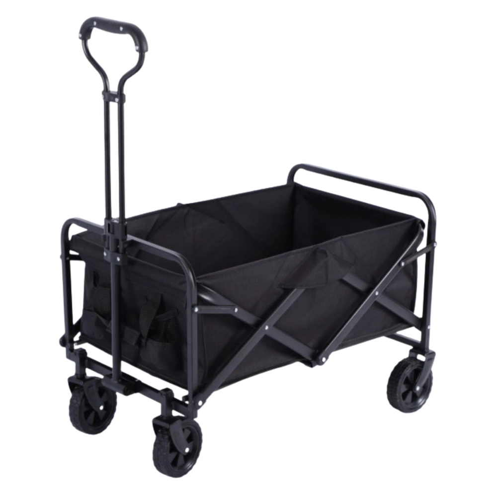 Efter brug kan vognen klappes sammen på få øjeblikke til kompakte mål, så den passer i bilens bagagerum eller i skabet. Praktiske sidekopholdere holder flasker lige ved hånden, og den solide konstruktion klarer også tungere læs – fra havematerialer til campingudstyr.