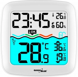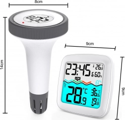 Nyd bekvem kontrol over forholdene i hjemmet og haven. Denne vejrstation med flydende sensor til poolen viser straks vandtemperaturen og samtidig indendørs temperatur, luftfugtighed, tid og kalender. Takket være trådløs transmission med en rækkevidde på op til 60 meter får du præcise data uden unødige kabler.
