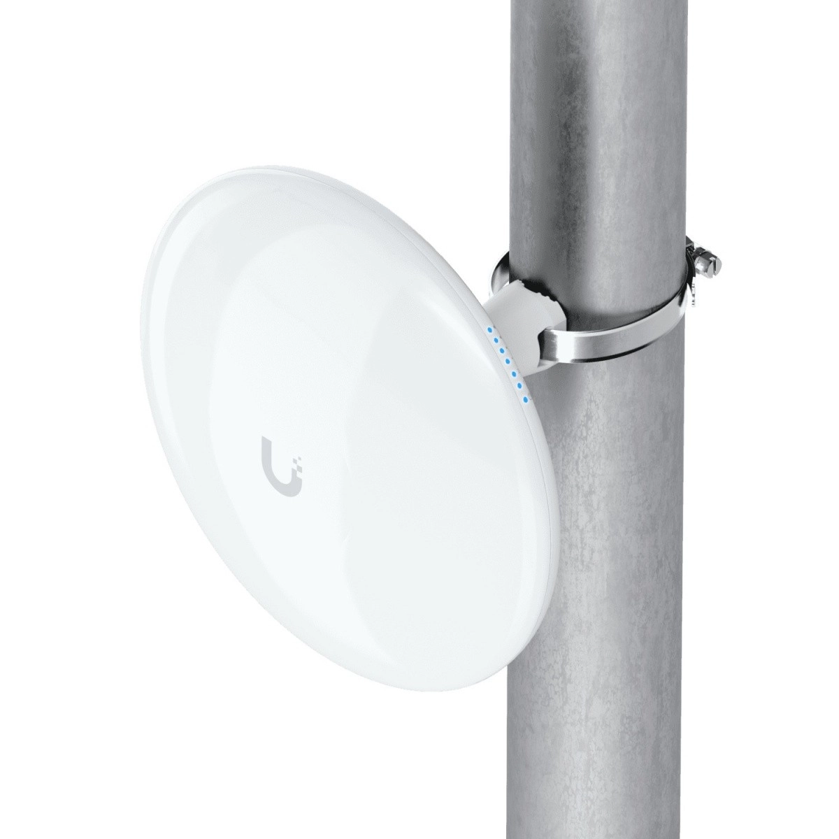 Enheden er designet til nem montage på mast eller væg, med praktiske LED-indikatorer til hurtig statuskontrol. I UniFi-miljøet får du overskuelig administration, overvågning og hurtig konfiguration til både PTP- og PtMP-scenarier.
