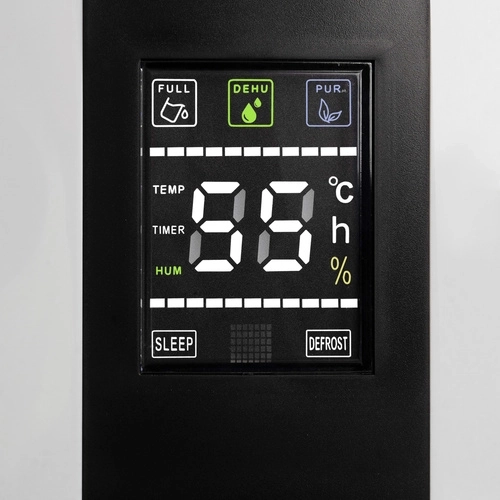 Integreret hygrometer, termometer og hygrostat viser nøgletal på et overskueligt panel. Touchbetjening, fjernbetjening og timer 1–24 t gør det muligt at indstille driften præcist. En praktisk aftagelig 2 l beholder, automatisk sluk ved fuld beholder og mulighed for kontinuerligt afløb via slange sikrer bekymringsfri drift.