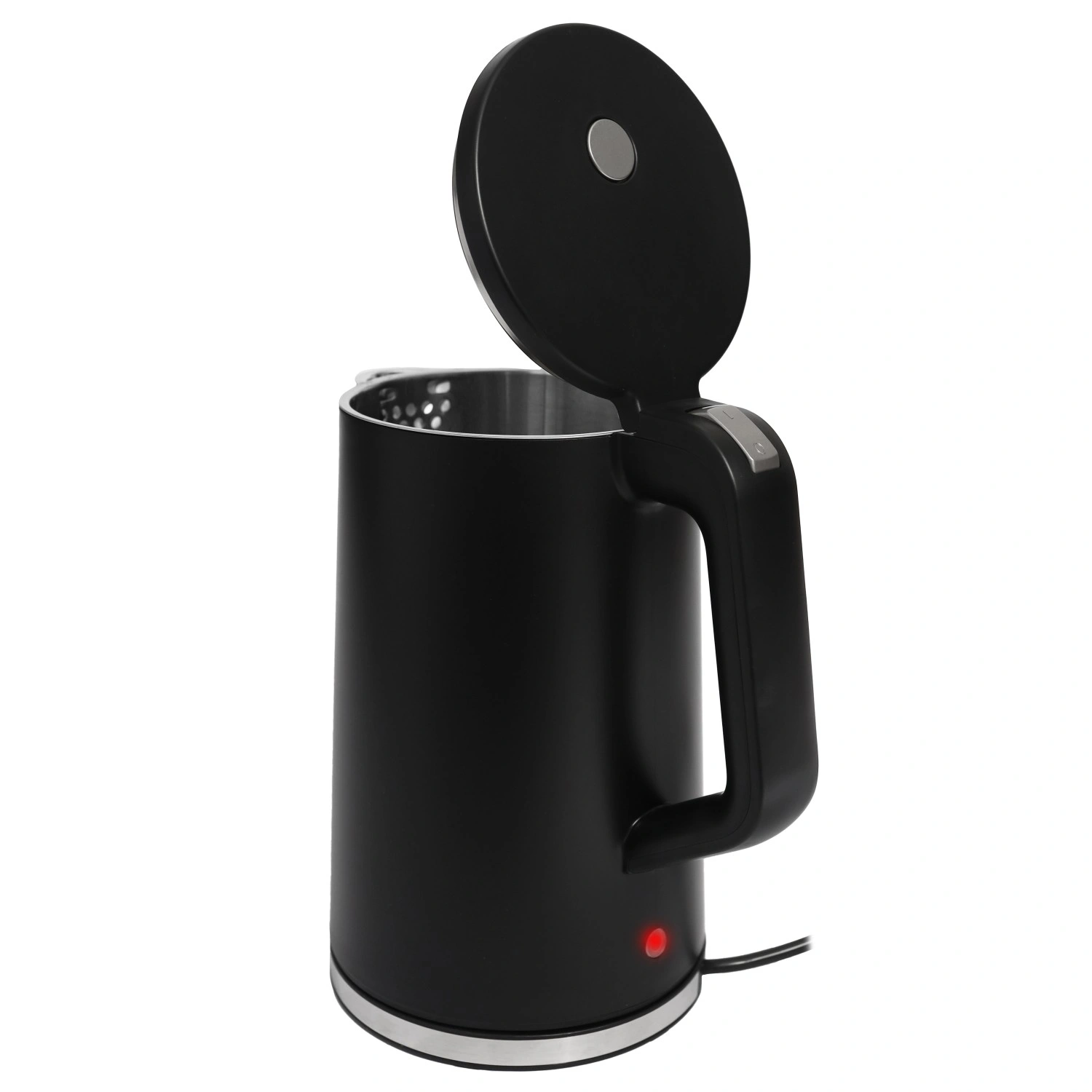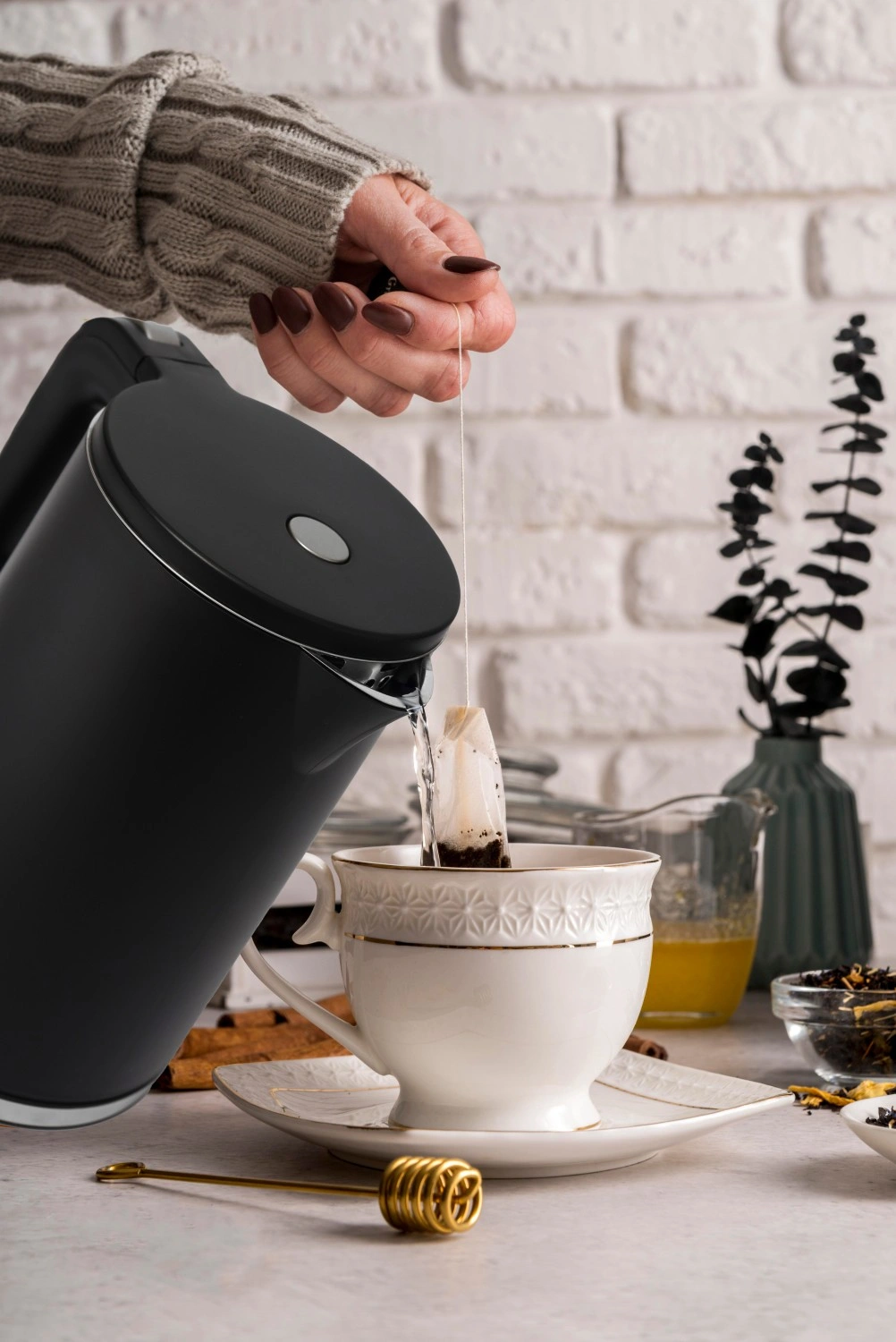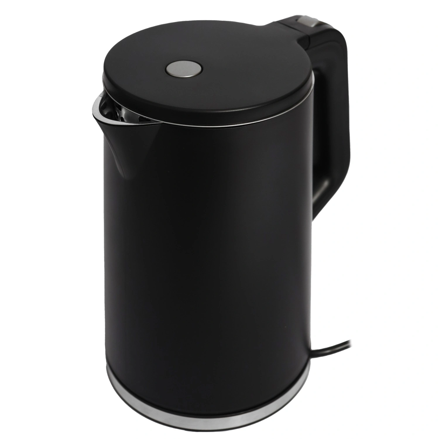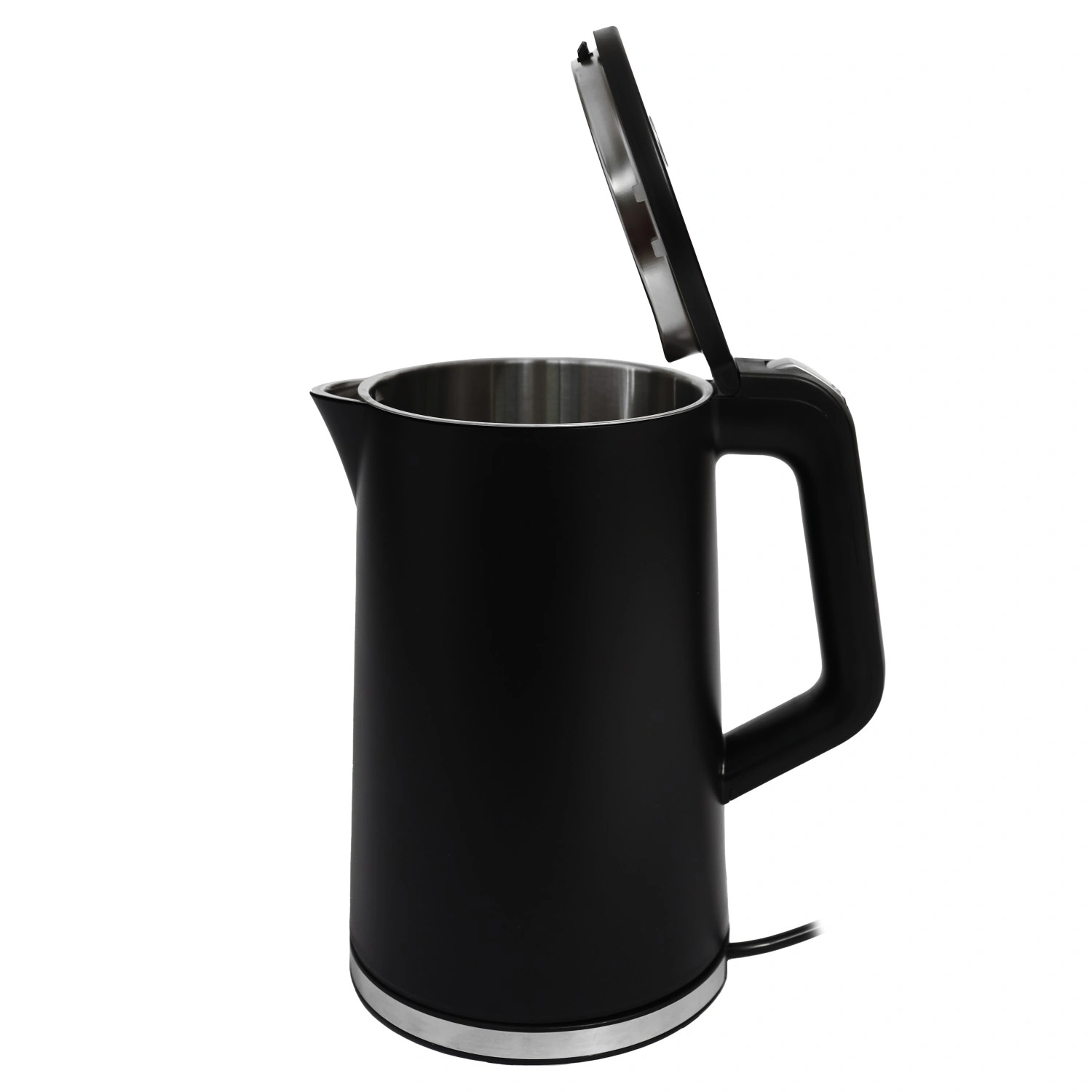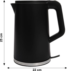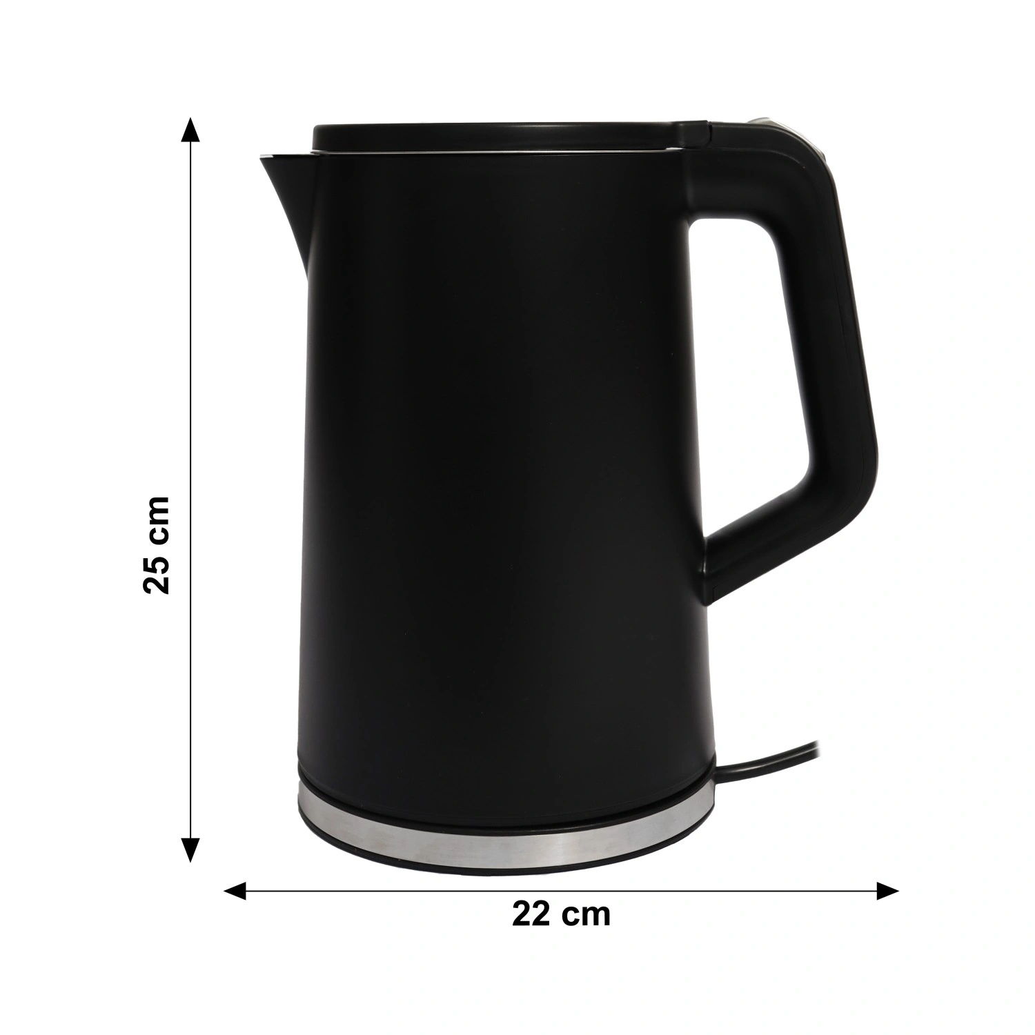 Nyd hurtig og bekvem opvarmning af vand hvor som helst – i sommerhuset, på kontoret eller i det lille køkken. Kedlen med 1500 W effekt sikrer hurtig opkogning, det moderne sorte design passer ind i enhver indretning, og den dobbeltvægget krop isolerer varmen bedre og er behagelig at røre ved.