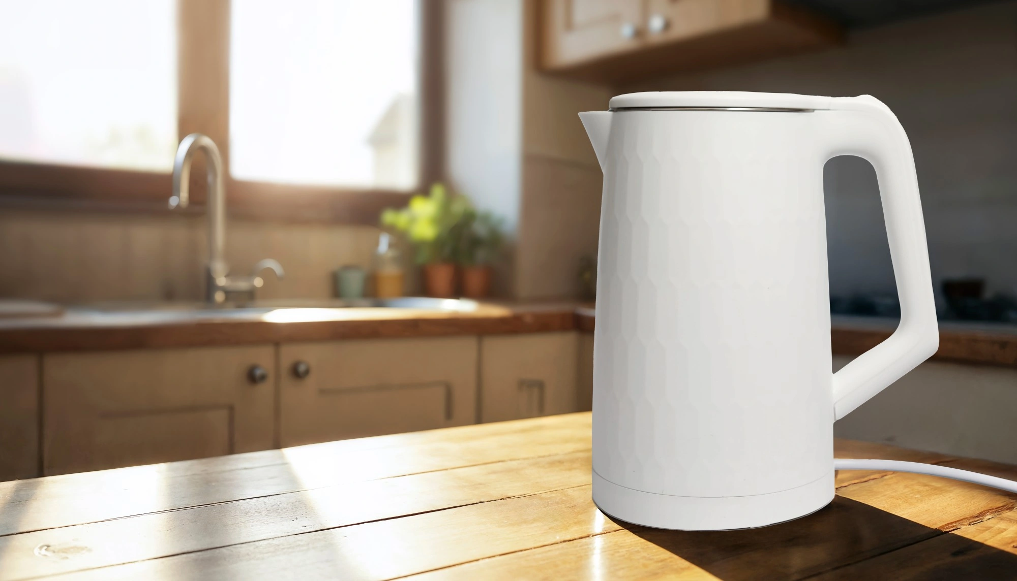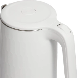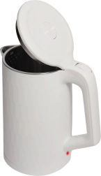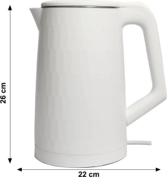 Den indvendige beholder af rustfrit stål er korrosionsbestandig og nem at rengøre. Dobbeltvæg med ydre skal af polypropylen begrænser opvarmningen af overfladen og giver bedre varmeisolering. Der er automatisk slukning efter opkog, beskyttelse mod tørkogning og en lyskontakt for tydelig indikering af drift.