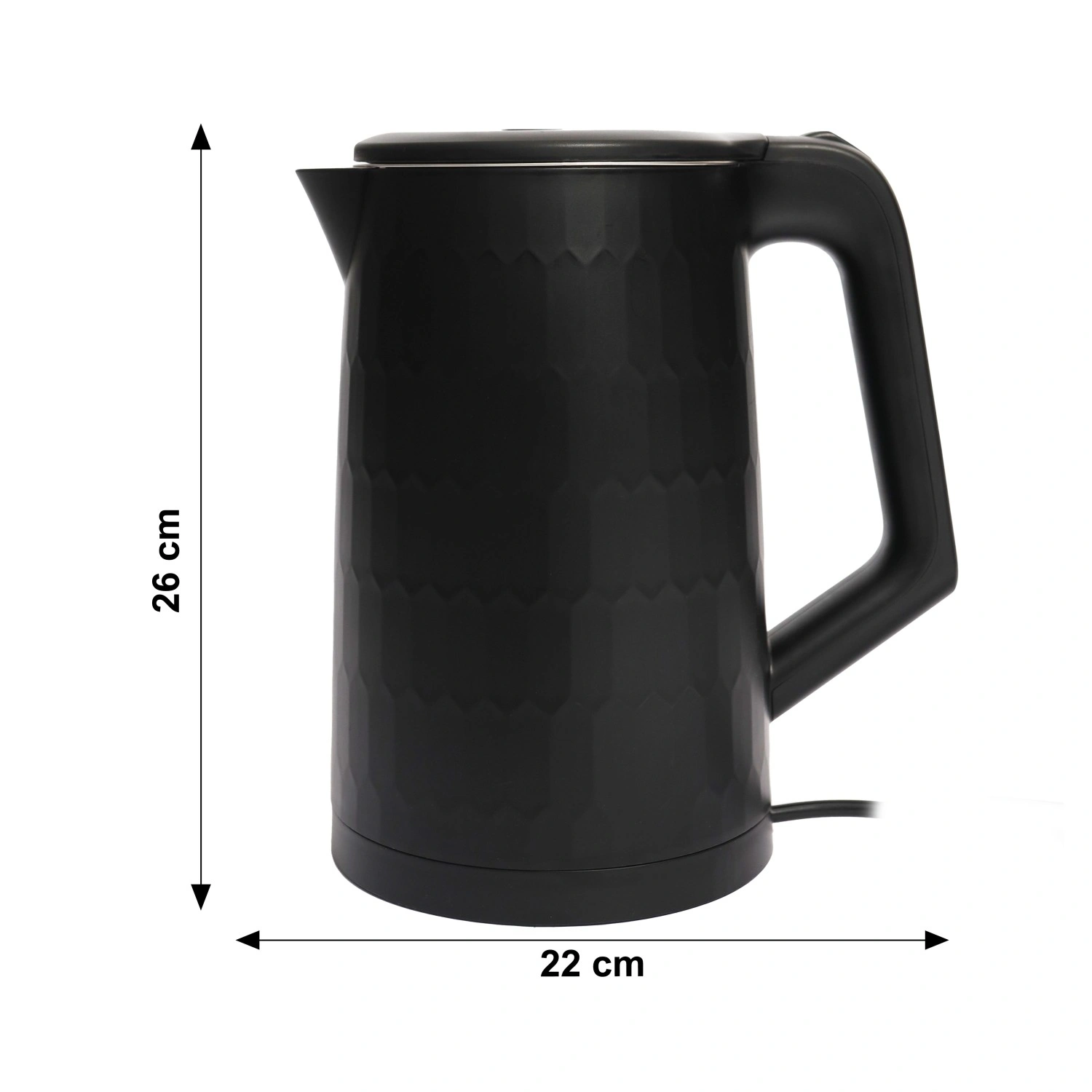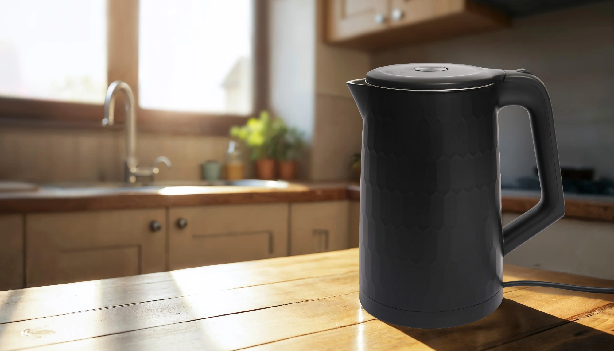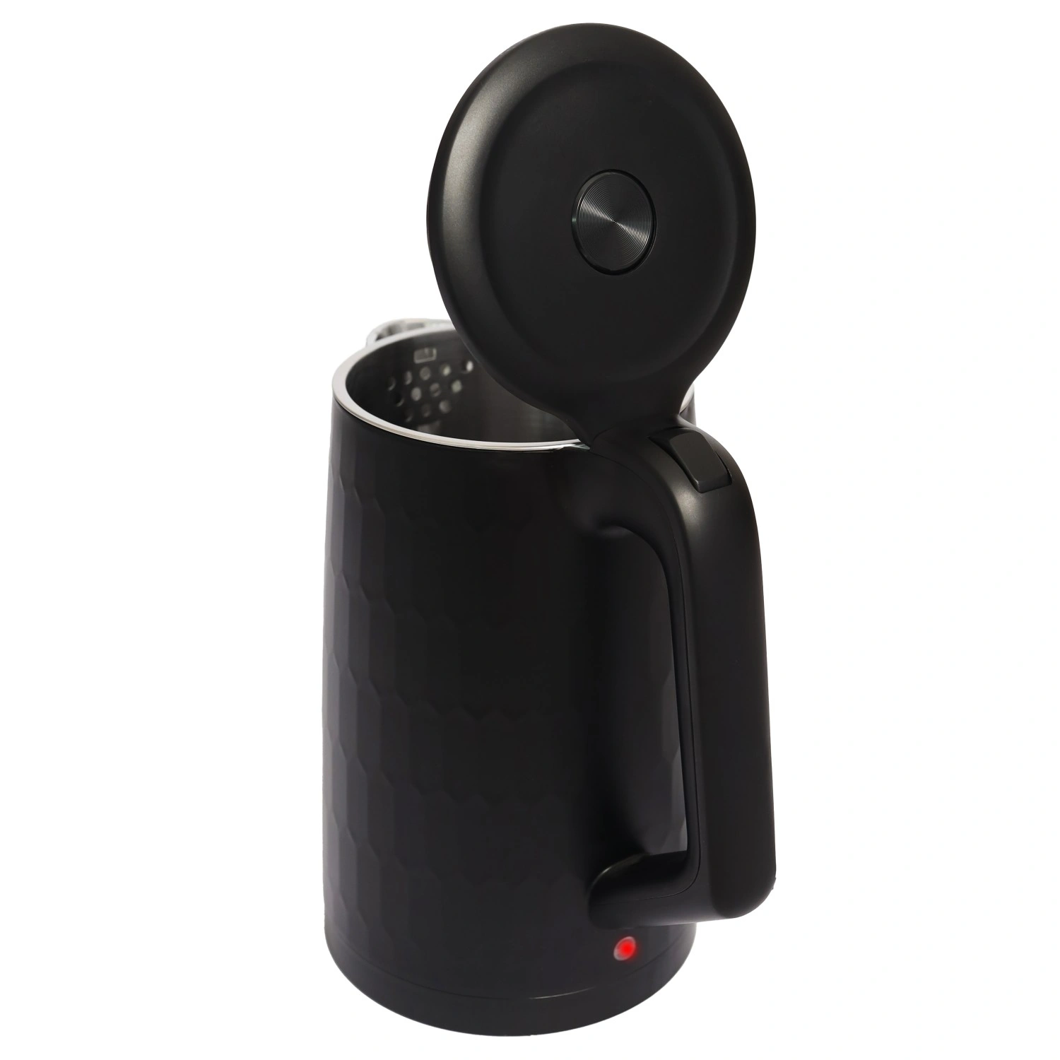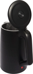Gennemtænkte detaljer gør daglig brug lettere: knap til lågåbning i håndtaget muliggør bekvem betjening med én hånd, lyskontrol viser drift, indre niveauindikator hjælper med præcis dosering af vand, og 360° drejelig base gør det muligt at placere kedlen fra enhver retning. Naturligvis med automatisk slukning efter kogning og beskyttelse mod tørkogning for maksimal sikkerhed.