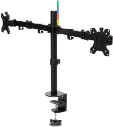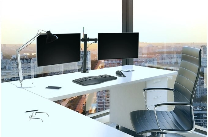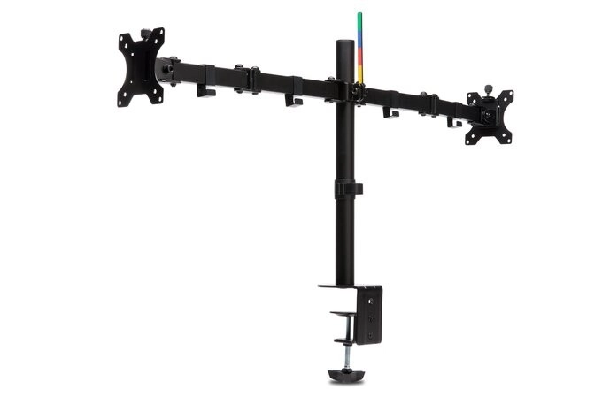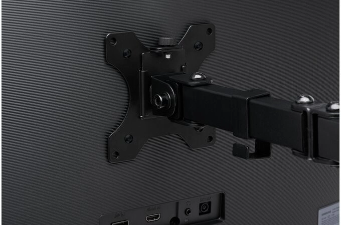 Den robuste stål- og aluminiumskonstruktion monteres på bordkanten med en C-klemme eller gennemføring, så den sparer plads og ikke ridser bordpladen. Hver arm bærer en skærm op til 32" og 8 kg og giver jævn og præcis positionering for optimal indstilling i ethvert arbejdsmiljø.