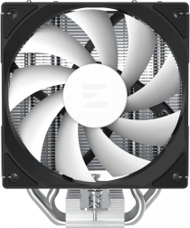 Adressérbar RGB-belysning skinner gennem de hvide matte blade på 120 mm-blæseren og lader dig matche farverne med resten af komponenterne. Takket være PWM-regulering balancerer blæseren klogt mellem lavt støjniveau og høj køleydelse, mens den medfølgende termiske pasta ZM-STC8 minimerer den termiske modstand mellem CPU og kølerbund.
