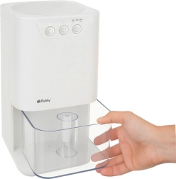 Hold et sundt og friskt indeklima hver dag. RUHHY-luftaffugteren er en moderne, kompakt og let betjent hjælper til bolig, kontor og mindre rum som garderobe eller spisekammer. Den stille og energieffektive drift er ideel til soveværelse og arbejdsværelse, mens den store 1.400 ml tank med automatisk sluk ved fuld tank sikrer sikker og ubesværet drift.