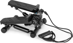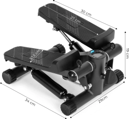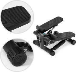 Kompakt stepper med modstandsexpandere til hjemmetræning gør det effektivt at styrke underkrop og overkrop, forbedre konditionen og forbrænde kalorier. Robust konstruktion af stål, ABS og TPE, skridsikre pedaler, justerbar intensitet og LCD-display med 5 funktioner til at følge tid, skridt og kalorier. Inkluderer beskyttende måtte og stabile fødder for sikker træning på alle underlag.