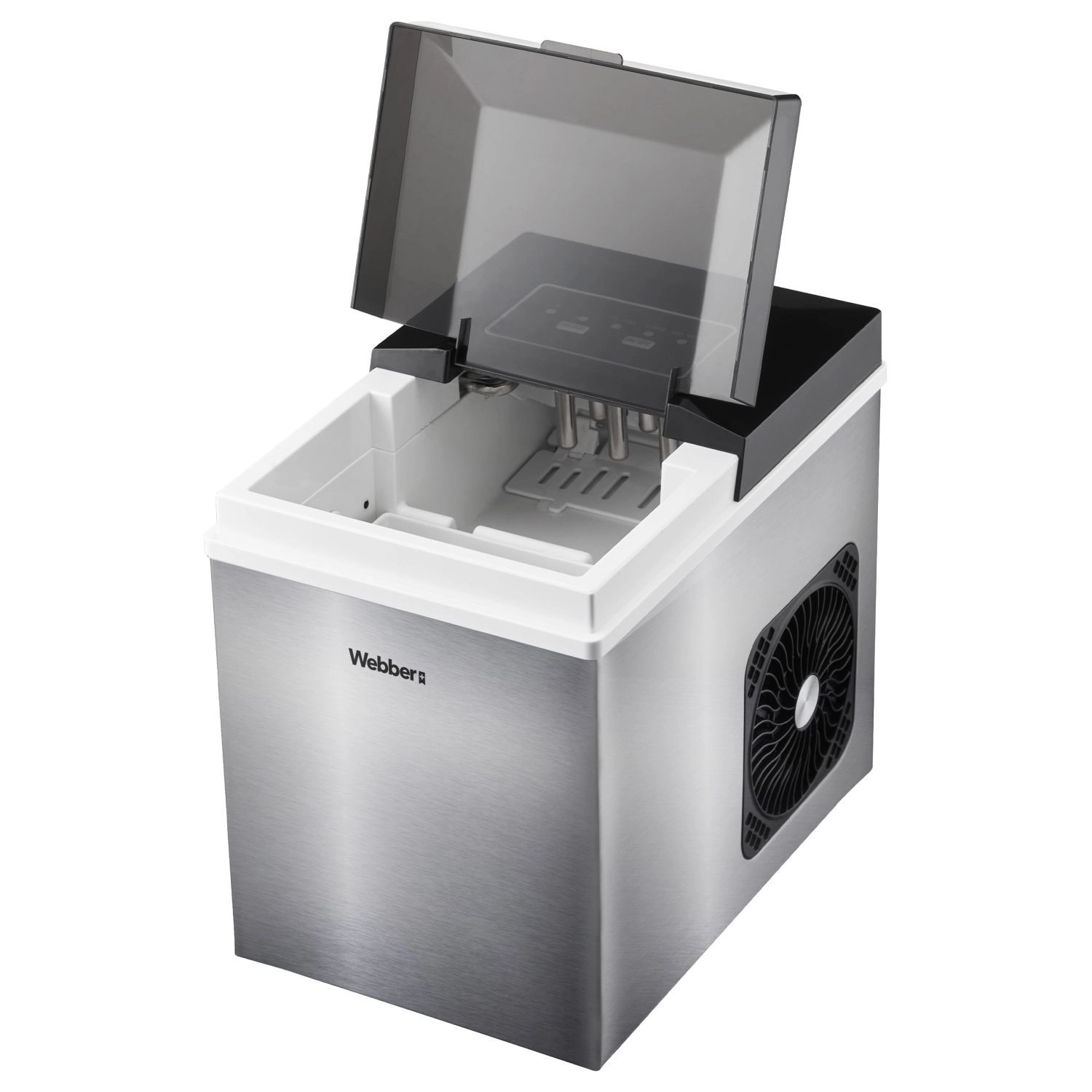Farvel til isbakker og ventetid. WEBBER isterningsmaskinen er en pålidelig hjælper til hurtig afkøling af drikke om sommeren, til grill og familiefester. De kompakte mål passer på de fleste køkkenborde, og automatisk drift med et overskueligt LED-panel gør den nem at bruge. Vælg mellem 2 terningestørrelser (S/L) alt efter driktype, og nyd altid frisk is lige ved hånden.