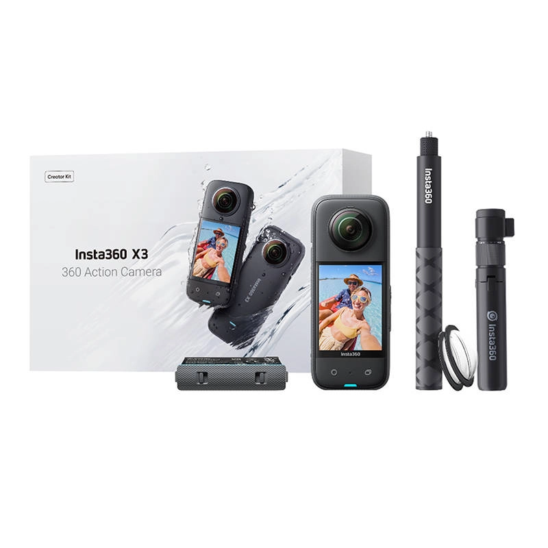 Insta360 X3 Creator Kit er det ideelle valg for rejsende, atleter og content creators, der ønsker maksimal kvalitet og alsidighed. Takket være en 1/2" sensor optager du 5.7K 360° video og op til 72MP 360° fotos med realistiske detaljer. I Single Lens-tilstand filmer den op til 4K 30 FPS eller ultravidvinkel 2.7K 170°, og den byder på slow motion 4K 120 FPS / 3K 180 FPS samt 8K Timelapse.