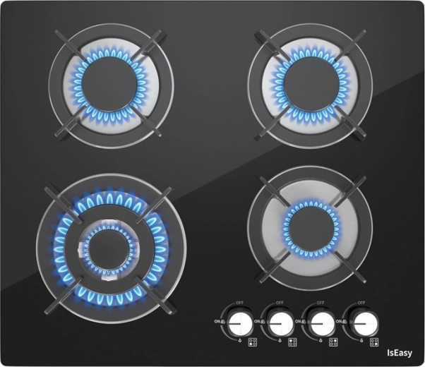 ISEASY gaskogeplade med en bredde på 60 cm er et fremragende valg til det moderne køkken. Det elegante sorte glas og støbejernsriste giver et premium udtryk, samtidig med at den er varme- og ridsebestandig og let at vedligeholde. Automatisk afbrydelse af gas ved flammeudslukning giver øget sikkerhed i hele husholdningen.