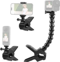 Det universelle PULUZ-beslag med klemme tilbyder stabil montering, fleksibel vinkeljustering og bred kompatibilitet med actionkameraer. Den robuste konstruktion klarer krævende forhold både ude og inde, og takket være klemmen med spændvidde 0,6–5 cm kan den fastgøres på rør, plader, stativer eller grene.