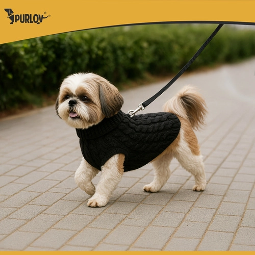 Den varme, strikkede trøje fra PURLOV holder dit kæledyr lunt og komfortabelt selv på kolde dage. Den fine akrylgarn er behagelig at røre ved, irriterer ikke huden og begrænser ikke bevægeligheden takket være sin elasticitet. Den er let at tage på, har 2 åbninger til forpoter og en praktisk åbning til line.