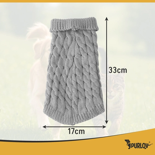 Den varme sweater til både hunde og katte er lavet af blød akrylgarn, som er behagelig at røre ved og skånsom mod huden. Takket være det strækbare materiale tilpasser sweateren sig dyrets figur, så den strammer ikke, gnaver ikke og begrænser ikke bevægelse. Ideelt valg til racer som fransk bulldog, mindre beagle, gravhund, mops, jack russell terrier, dværgschnauzer, cavalier king charles spaniel samt til større europæiske katte, unge maine coon, britisk korthår eller unge norsk skovkat.