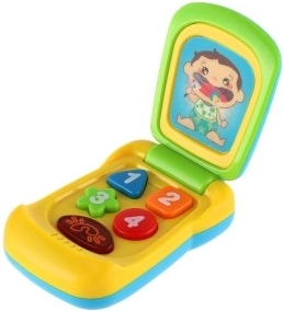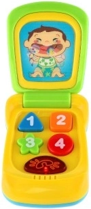 Det klassiske “klap”-design ligger godt i børnehånden og er let at åbne. Farvede tal på knapperne indbyder til rolleleg og træner finmotorik og koordination.