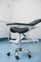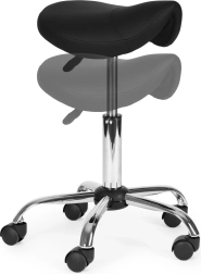 Ergonomi, der holder hele dagen. Saddelformen støtter kroppens naturlige holdning, korrekt placering af bækken og rygsøjle og reducerer spændinger i lænderyggen. Takket være 4 cm blødt skum er siddekomforten høj selv under lange vagter. 360° drejemekanisme gør det let at skifte position uden at rejse sig.