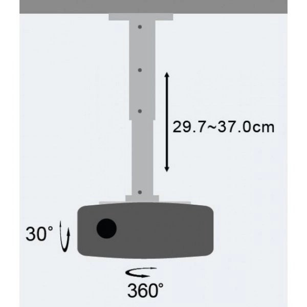 Loftbeslag til de fleste projektorer, der muliggør en sikker og æstetisk installation. Takket være den robuste aluminiumsopbygning og den universelle monteringsplade er det kompatibelt med en bred vifte af modeller. Den justerbare længde på 30–37 cm hjælper dig med at finindstille projektionsafstanden.
