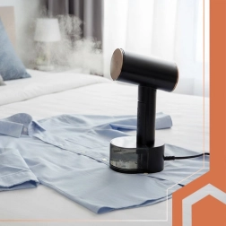 For maksimal bekvemmelighed tilbyder enheden dampning i lodret og vandret position, berøringsskærm til nem indstilling og et rigt sæt tilbehør: bukseklemme og 2-i-1-børste, målebæger til vand samt et rejseetui, der kan vaskes ved 30 °C. Der er også indikator for tom vandtank, automatisk slukning og overophedningsbeskyttelse for sikker drift hjemme og på farten.