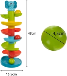 Lad børn opdage glæden ved bevægelse og lyd med et farverigt kugletårn med spiralrutsjebane. Slip en kugle fra toppen og se den trille ned med en glad raslen – en enkel, men yderst underholdende interaktiv leg, der fastholder opmærksomheden i lang tid.