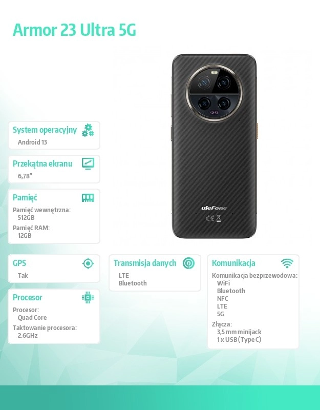 ULEFONE Armor 23 Ultra 5G er en pålidelig outdoor-telefon, der kombinerer høj ydelse, en robust konstruktion og et avanceret kamerasystem i et elegant sort design. Den er skabt til brugere, der vil have en telefon, som klarer arbejde, underholdning og eventyr uden kompromiser.