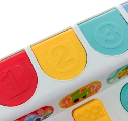 De varierede betjeningselementer (håndtag, drejeknap, trykknap) stimulerer finmotorikken, understøtter koordinationen og styrker forståelsen af årsag og virkning. De livlige farver fanger opmærksomheden og motiverer til mere leg. Et fantastisk gave-tip til små bil- og maskinelskere.
