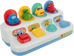 Denne interaktive pop-up-legetøj er ideel til den første udforskning af teknik og bevægelse. Børn aktiverer de skjulte køretøjer ved at trykke på knapper, hvorefter de popper op fra den farverige base – en enkel og fængende måde at lære gennem leg. De kompakte mål gør den nem at transportere og opbevare, og legetøjet passer perfekt på både bord og tæppe.