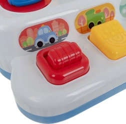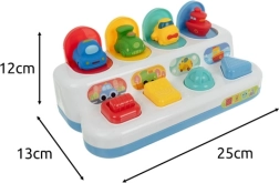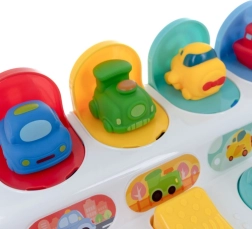 Sjovt pædagogisk legetøj til børn fra 18 måneder, der understøtter hånd-øje-koordination, finmotorik og logisk tænkning. Den kompakte base gemmer fire køretøjer, som popper op, når man trykker på forskellige kontroller. Takket være forskellige knapformer (håndtag, drejehjul, knap) udvikles sansestimuli, og børn lærer princippet om årsag–virkning.