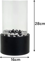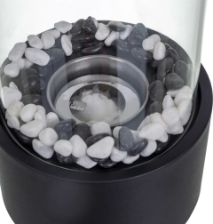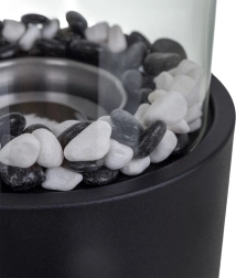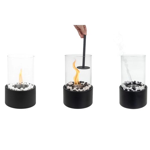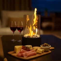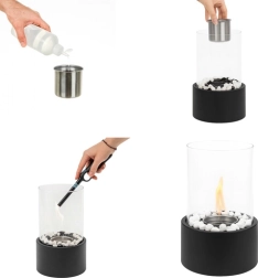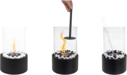 Ståltanken med absorberende keramiske fibre forlænger brændetiden og gør betjeningen nem. Medfølger slukker/lukker (flammeslukker) for bekvem slukning. Nem montering og skumpuder mod ridser i møbler gør denne biokamin til en praktisk løsning til daglig brug.