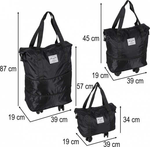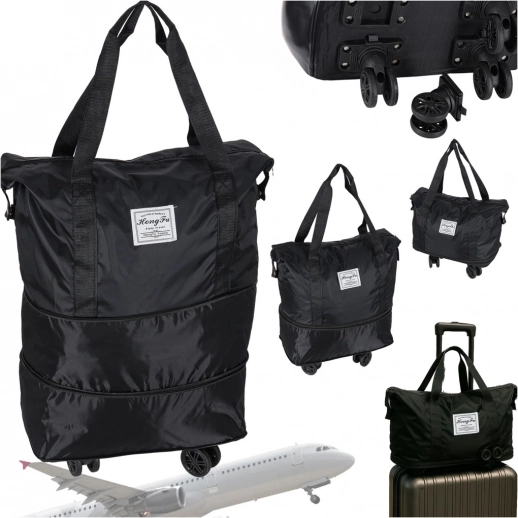 Denne lette, men robuste rejsetaske kombinerer fleksibiliteten ved en foldbar konstruktion med komforten fra hjul. Det vandafvisende Oxford-materiale beskytter indholdet mod regn og snavs, mens en kvalitetslynlås og en forstærket inderside sikrer lang holdbarhed. Tre udvidelsestilstande gør det muligt at tilpasse kapaciteten til dine aktuelle behov.