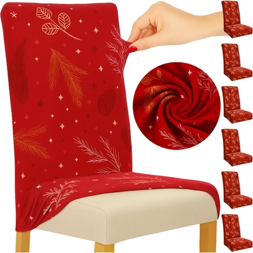 Skab en magisk julestemning derhjemme på få minutter. RUHHY-betrækkene er fremstillet af en blød og holdbar blanding af polyester og spandex, hvilket gør dem behagelige at røre ved, robuste og samtidig meget elastiske. Det røde juledesign harmonerer smukt med pynt og løfter straks spiseområdets udtryk.